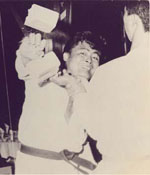 Accepting that GM Choi's Yawara style had few (if any) kicks, GM Ji's richly TaekKyon integrated style is modern HapKiDo that most recognize it to be. The first gym (dojang) opened by Gm Ji was called AhnMooKwan. It was named after the district it was located, but was still Yawara influenced. GM Ji later moved and opened a new gym in 1957, whose name is the most famous in HapKiDo annals: SUNG MOO KWAN™ (aka SongMooKwan™ or SeungMooKwan™) or "School of Martial Accomplishments". GM Ji abandoned this name in 1979 after leaving Korea, and has since taught under the name of SinMooKwan. |